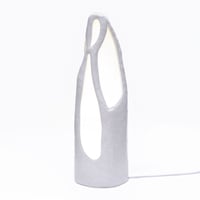 Lampe à poser en faïence émaillée, papier washi et LED.